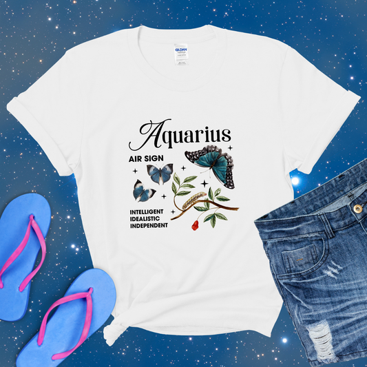 Aquarius Butterfly Zodiac T-Shirt - Astrology Tee, Horoscope Gift, Aquarius Birthday Shirt
