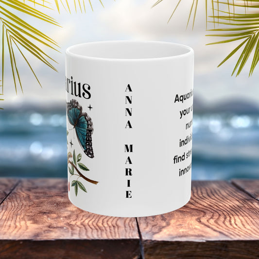 Aquarius Zodiac Mug - Personalized Astrology Coffee Cup, Star Sign Birthday Gift for Horoscope Lovers
