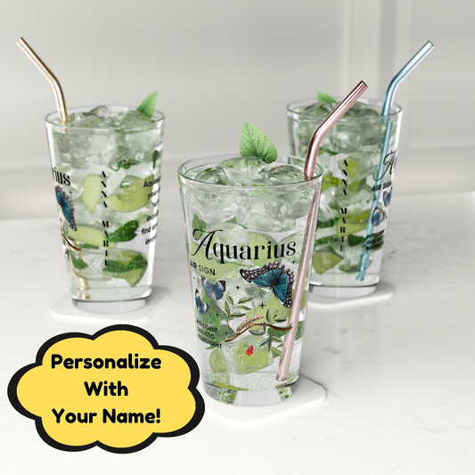 Aquarius Zodiac Pint Glass - Personalized Astrology Gift, 16oz Horoscope Star Sign Drinkware