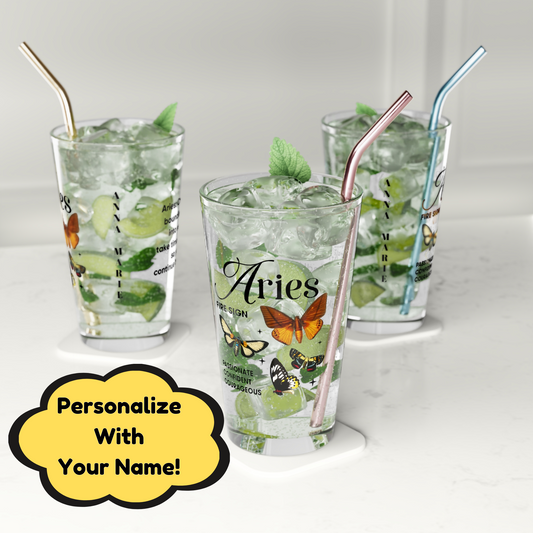 Aries Astrology Pint Glass - Custom 16oz Zodiac Birthday Gift, Personalized Horoscope Glass