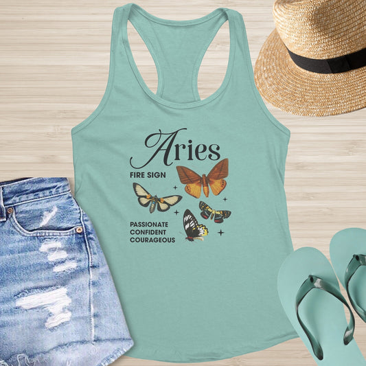 Aries Butterfly Racerback Tank - Zodiac-Inspired Mental Health Top with Symbolic Butterfly Design