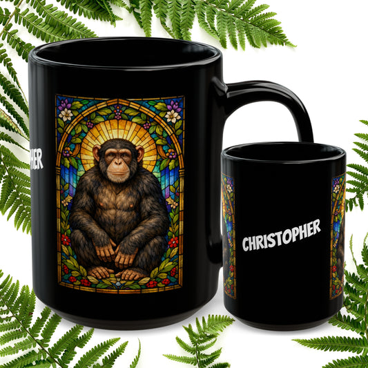 Chimpanzee Stained Glass Black Ceramic Mug - Personalized Primate Wildlife Art Coffee Mug Gift