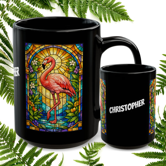 Flamingo Stained Glass Black Ceramic Mug - Personalized Colorful Animal Art Coffee Mug Gift