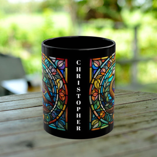 Eagle Stained Glass Black Ceramic Mug - Personalized Patriotic Wildlife Art Coffee Mug Gift
