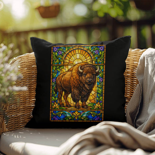 Bison Stained Glass Throw Pillow - Western Wildlife Accent Pillow for Home or Patio