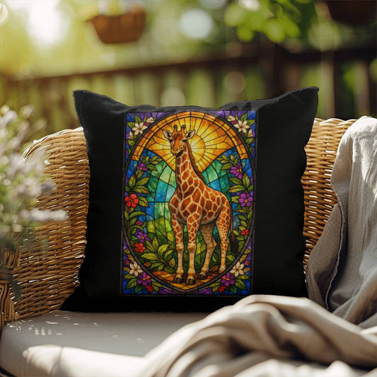 Giraffe Stained Glass Throw Pillow - Jungle Animal Home Decor, Indoor Outdoor Pillow