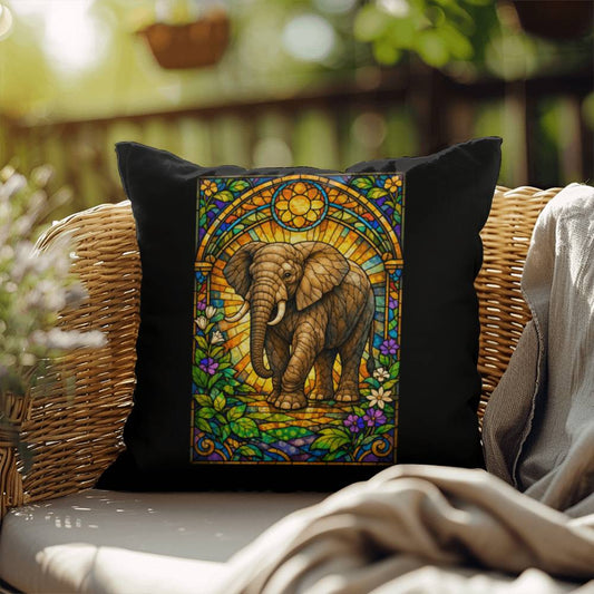 Elephant Stained Glass Throw Pillow - Safari Animal Decor, Indoor Outdoor Accent