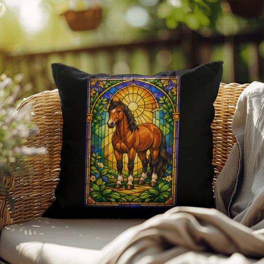 Horse Stained Glass Throw Pillow - Equestrian Animal Decor, Indoor Outdoor Accent