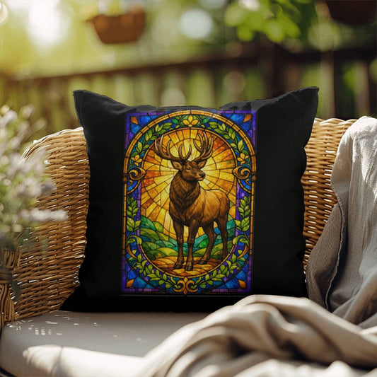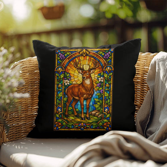 Deer Stained Glass Throw Pillow - Woodland Animal Decor, Indoor Outdoor Cushion