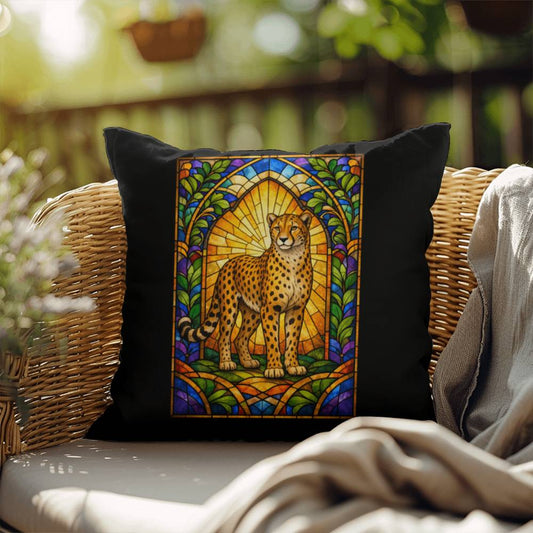 Cheetah Stained Glass Throw Pillow - Animal Print Home Decor, Indoor Outdoor Accent
