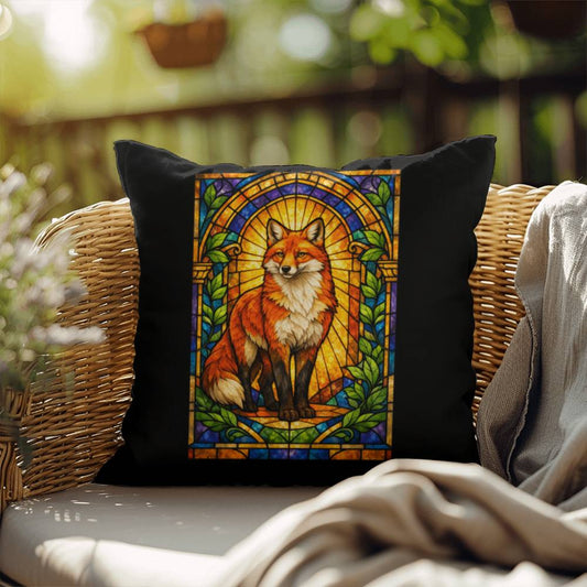 Fox Stained Glass Throw Pillow - Woodland Wildlife Decor Accent Cushion