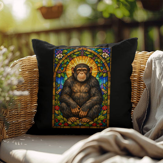 Chimpanzee Stained Glass Throw Pillow - Primate Wildlife Home Decor Cushion