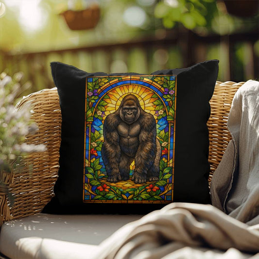 Gorilla Stained Glass Throw Pillow - Powerful Wildlife Art Decor Cushion