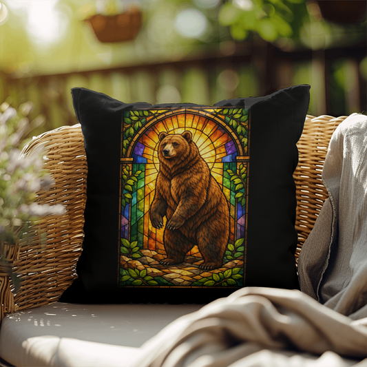 Bear Stained Glass Throw Pillow - Rustic Wildlife Home Decor, Indoor Outdoor Cushion
