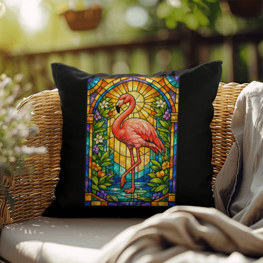 Flamingo Stained Glass Throw Pillow - Colorful Tropical Wildlife Accent Pillow