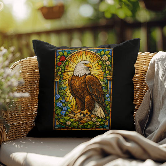 Eagle Stained Glass Throw Pillow - Birds of Prey Decor, Indoor Outdoor Home Accent