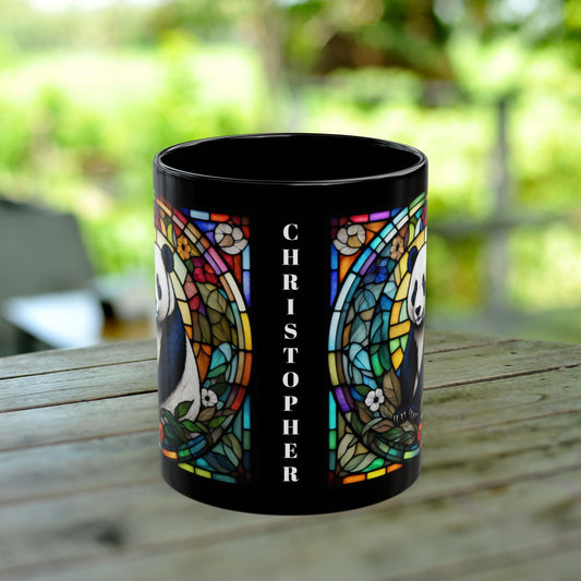 Panda Stained Glass Throw Pillow - Wildlife Animal Decor, Indoor Outdoor Home Accent
