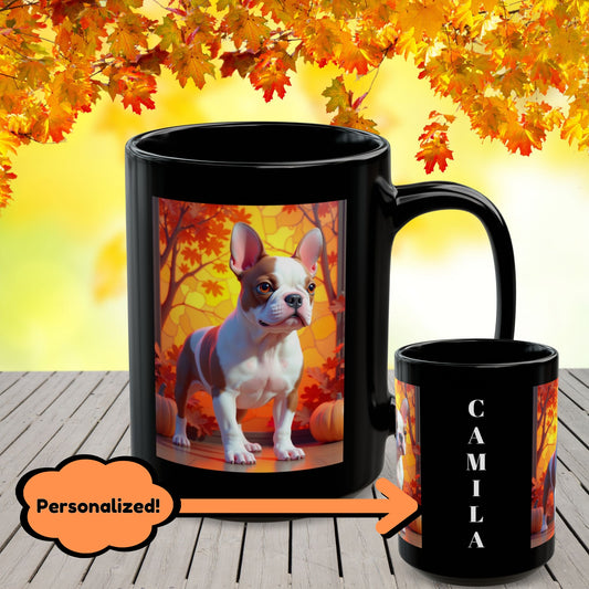 French Bulldog Red Pied - Autumn Black Mug, Seasonal Frenchie Lover Gift