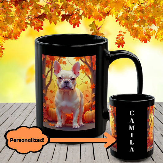 French Bulldog Cream - Autumn Black Mug, Cozy Fall Breed Coffee Cup
