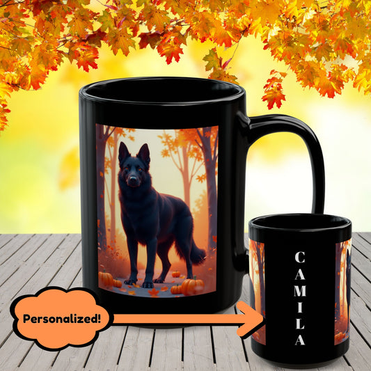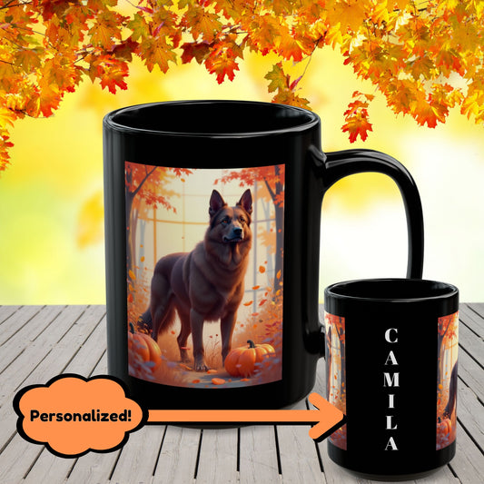 German Shepherd Black & Silver - Autumn Personalized Dog Mug, Cozy Fall Gift