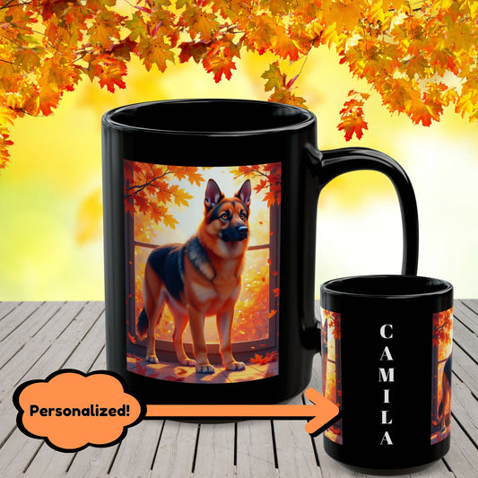 German Shepherd Black & Cream - Autumn Personalized Dog Mug, Fall Coffee Gift