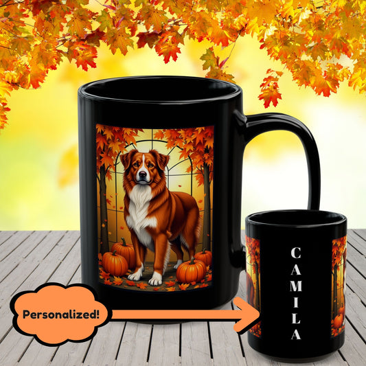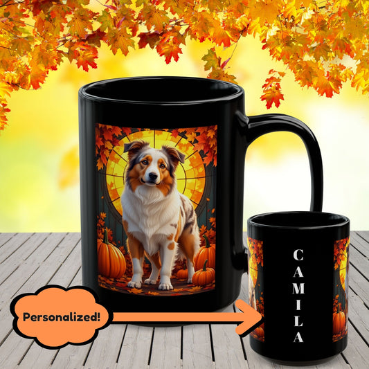 Australian Shepherd Black - Autumn Coffee Mug, Custom Herding Dog Lover Gift Cup
