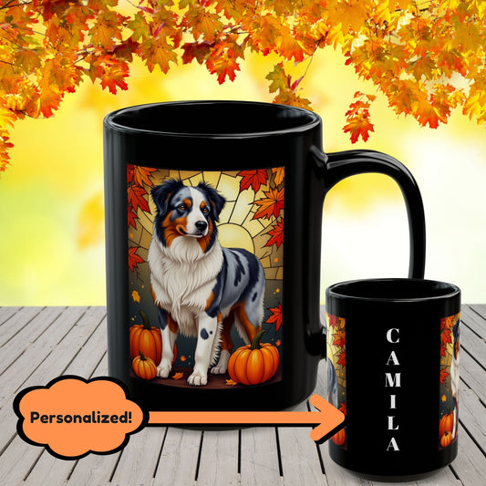 Australian Shepherd Blue Merle - Autumn Black Mug, Personalized Aussie Dog Coffee Cup