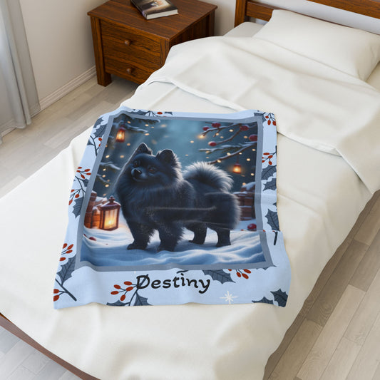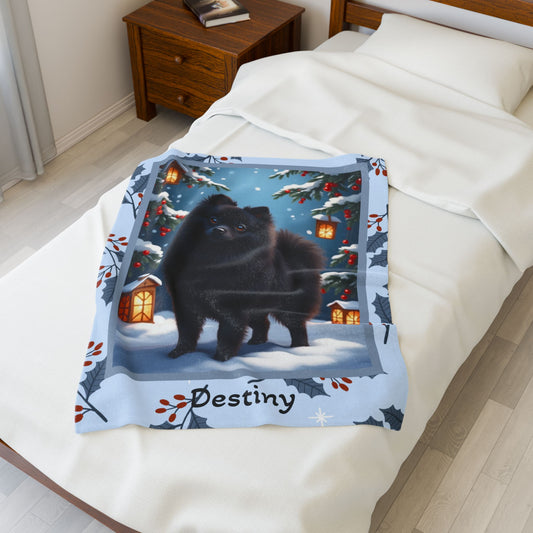 Pomeranian (Black) Personalized Pomeranian Winter Throw, Custom Small Dog Cozy Blanket