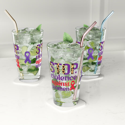 Stop Violence Against Women Pint Glass - Speak Up, Support Survivors