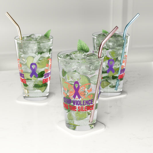 Stop Violence, End Silence DV Pint Glass - Advocacy & Awareness Gift