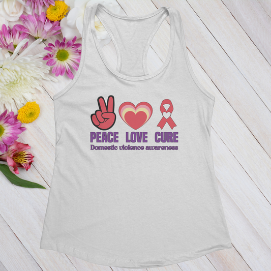 Peace Love Cure Domestic Violence Awareness Women's Ideal Racerback Tank