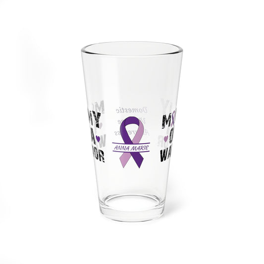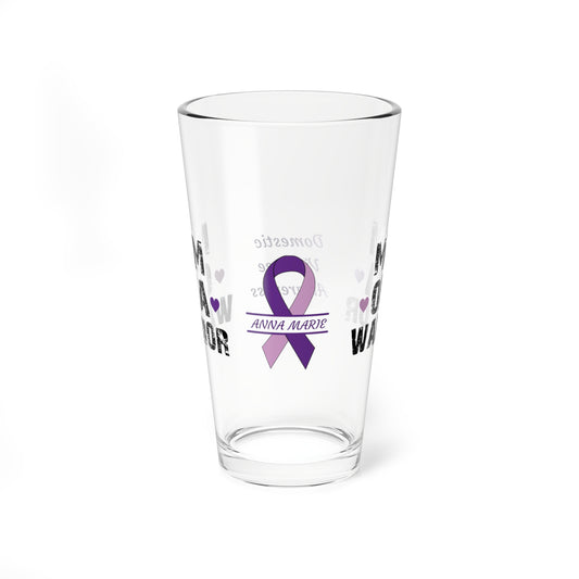 Custom Domestic Violence Awareness Pint Glass - Mom of a Warrior, Empowerment & Courage