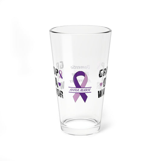 Custom DV Awareness Pint Glass - Grandpa of a Warrior, Empowerment & Courage