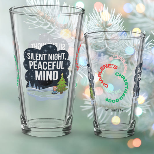 Silent Night, Peaceful Mind - Holiday Self-Care Christmas Pint Glass, Funny Mental Health Gift