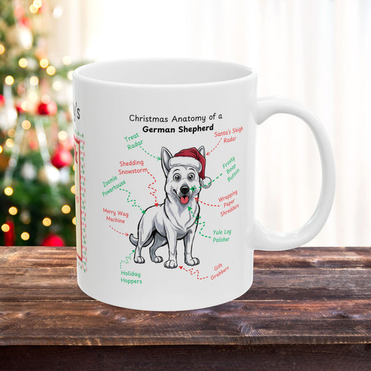 German Shepherd Dog Anatomy Christmas Mug - Personalized Festive Gift for GSD Lovers