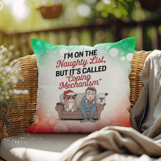 I’m on the Naughty List (Man and Cat) Throw Pillow - Christmas Humor Indoor Decor Gift