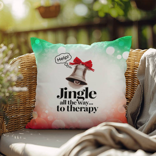 Jingle All the Way to Therapy Throw Pillow - Holiday Mental Health Funny Quote Decor
