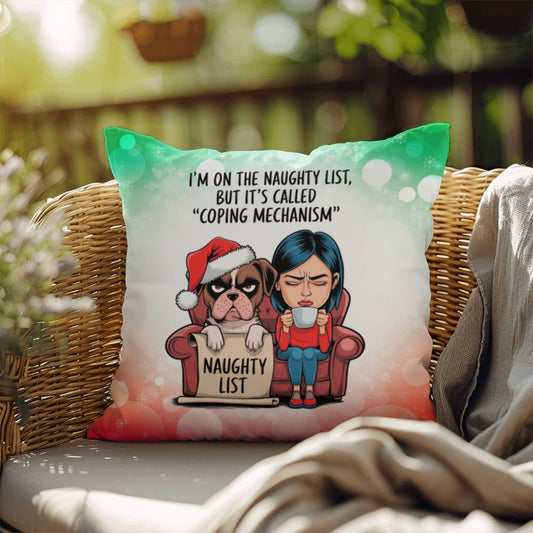 I’m on the Naughty List (Woman and Dog) Throw Pillow - Funny Holiday Home Accent Pillow