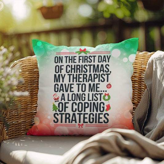 On the First Day of Christmas, My Therapist Gave to Me Throw Pillow - Funny Xmas Gift