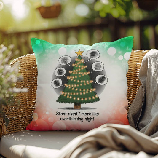 Silent Night? More Like Overthinking Night Throw Pillow - Funny Christmas Humor Decor