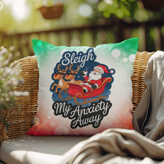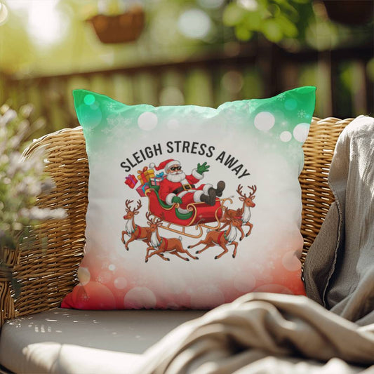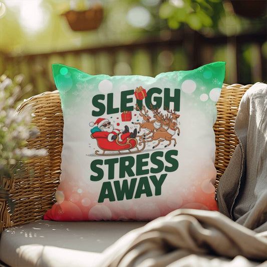 Sleigh Stress Away Throw Pillow - Funny Holiday Throw Pillow for Christmas Decor Gift