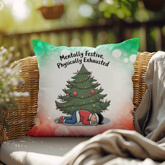 Sleigh Stress Away Throw Pillow - Christmas Mental Health Holiday Humor Accent Pillow
