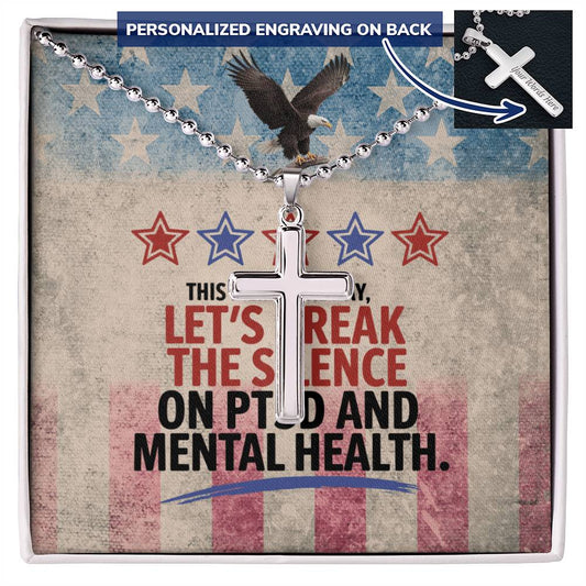 This Memorial Day, Let’s Break the Silence Cross Necklace - PTSD Awareness Gift for Veterans & Families