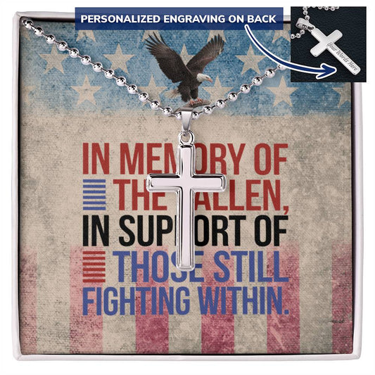 In Memory of the Fallen Cross Necklace - Custom Stainless Steel Necklace for Military Tribute & Loss