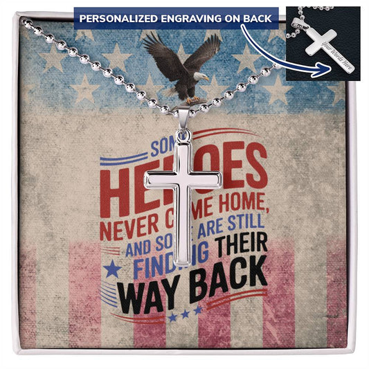 Some Heroes Never Came Home Cross Necklace - Custom Fallen Soldier Tribute & Memorial Day Pendant