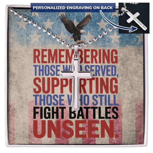 Remembering Those Who Served Cross Necklace - Engraved Stainless Pendant for Military Tribute Gift
