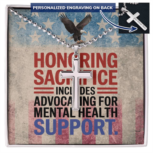 Honoring Sacrifice Cross Necklace - Stainless Steel Keepsake for Veteran Tribute & PTSD Awareness