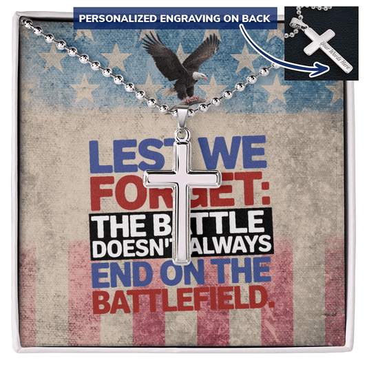 Lest We Forget Cross Necklace - Custom Stainless Steel Military Memorial Gift for Tribute & Loss