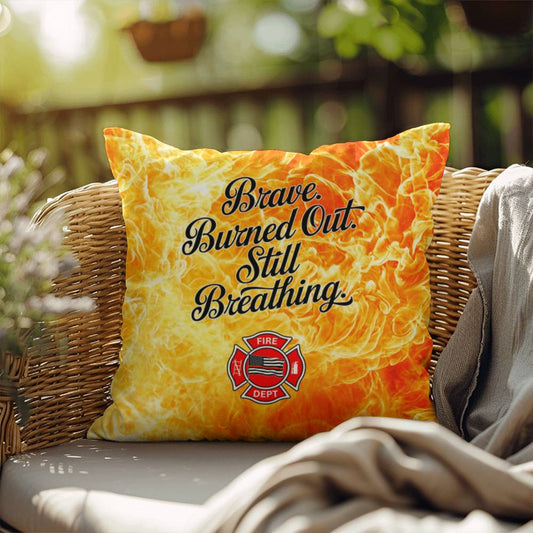 Firefighter Support Custom Indoor/Outdoor Pillow - Brave. Burned Out. Still Breathing, Mental Health Awareness