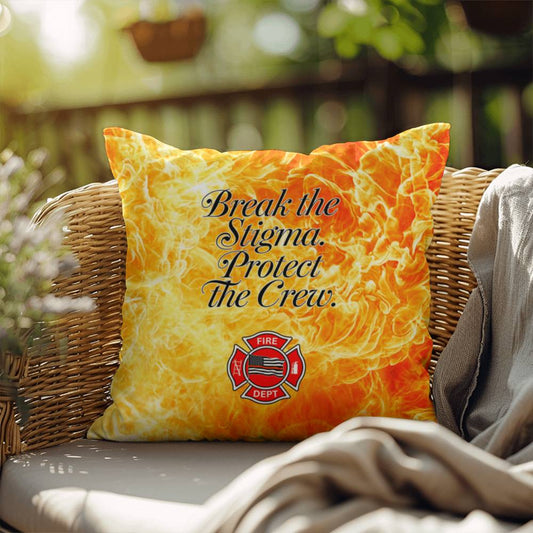 Firefighter Support Custom Indoor/Outdoor Pillow - Break the Stigma. Protect the Crew, Mental Health Awareness